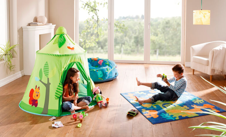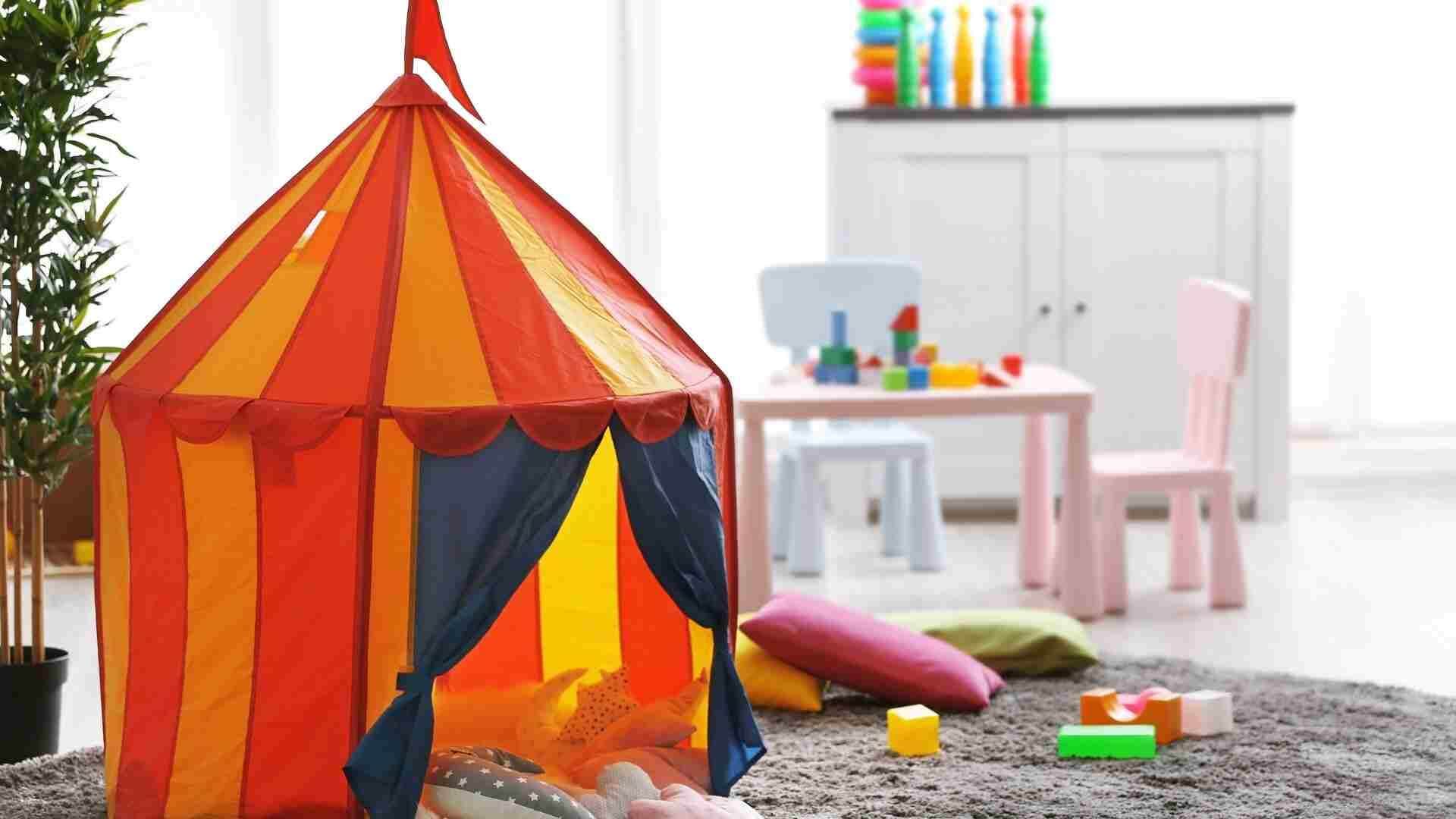 A játszósarok ideális és praktikus kialakításánál érdemes nyugodt, árnyékos vagy fedett helyet választani, ami nincs túl messze a fő eseménytől.